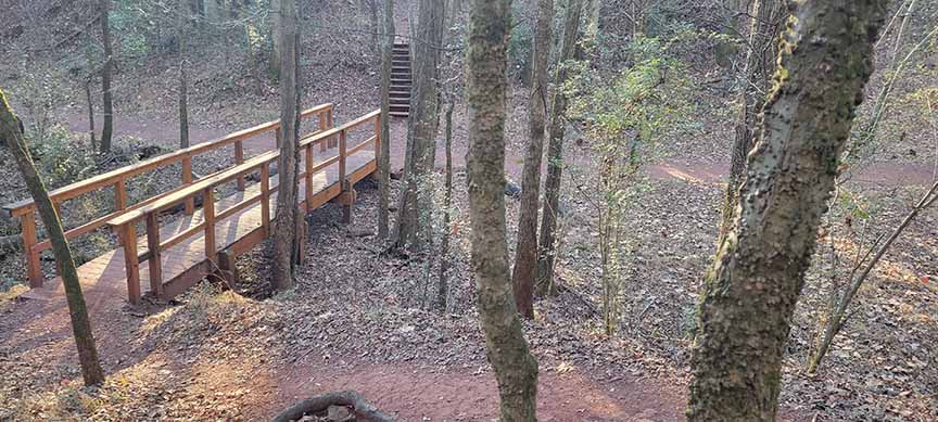 There are 16 miles of trails at Red Mountain Park which range from easy to slightly difficult. There is a map below that can give you an idea of the trail system here. It lists trail type and distance. Some of the trails are very wide and easy for a small family with a pet. Others are normal trail size, but I did not find any really difficult. Whether you want a casual stroll with the family, or if you like trail running, this park offers both. As you can see from the above image, there are wide paths that are easy to walk on.